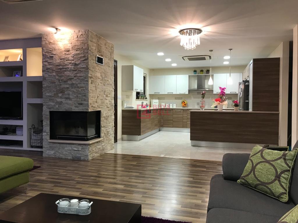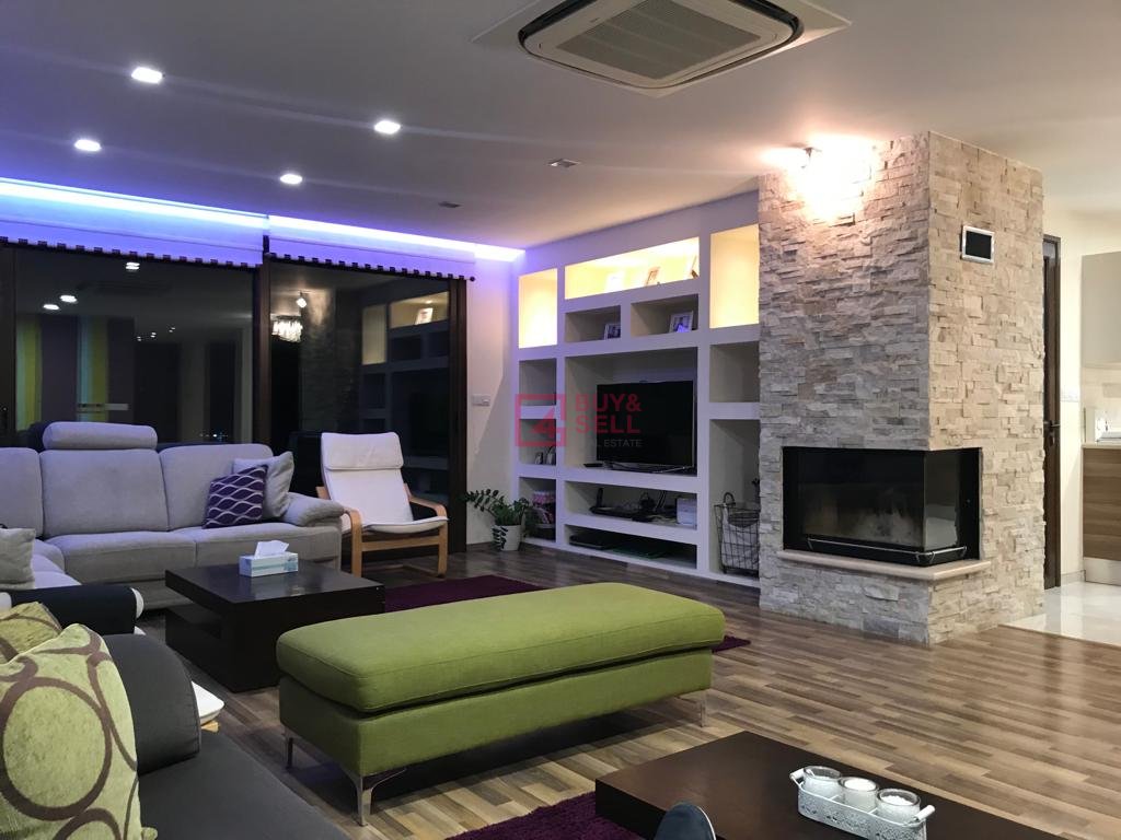Ground floor (114 sqm cover area): Semi-separate Italian kitchen with Miele electrical devices, dining room, living room with a fireplace, guest WC, storage under the stairs, patio and fantastic view to Limassol. Big veranda with BBQ place.