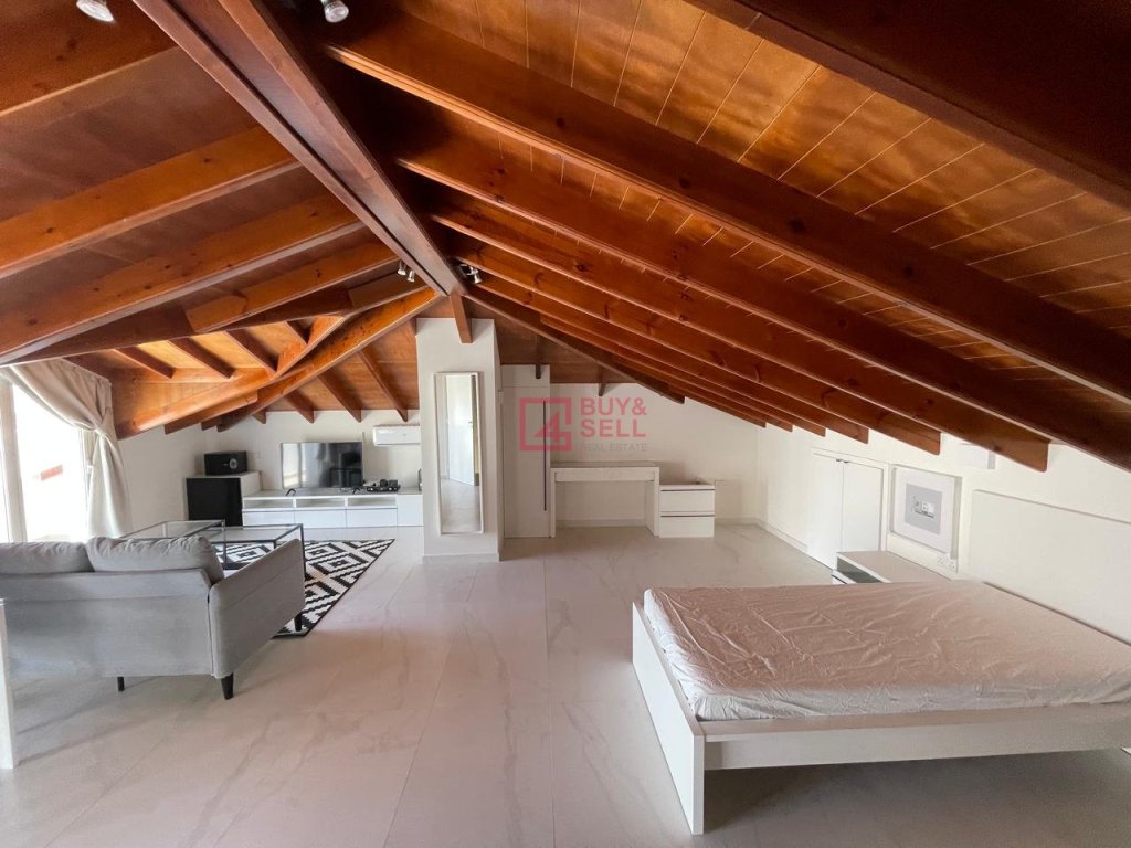 Rising to the third floor, a beautifully finished attic offers a peaceful hideaway. Whether used as a reading nook, meditation space, or a cozy extra lounge or even bedroom, this elevated retreat provides the perfect vantage point to enjoy sweeping sea views.
