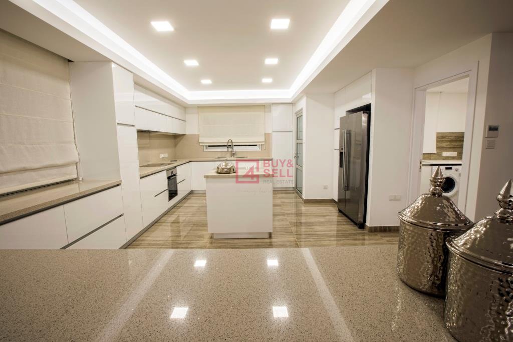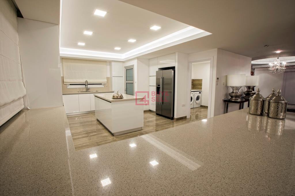 An unrivaled offering in one of Cyprus most iconic coastal locations. This is the definition of seafront opulence with magnificent sea views and a stunning contemporary design. This luxury penthouse is simply breathtaking. Fully renovated using only high-end materials and designed for effortless entertaining over its 380sqm floor-plan. Access the private entry where the use of sophisticated high-end stone and timber finishes sets the tone for the rest of the apartment. Imported flooring throughout the living areas that have been extensively used in all 5 bathrooms adding to the sophisticated feel and contrast the custom high gloss joinery and bathroom fittings, the main with Jacuzzi and sauna. All five bedrooms boast imported parquet flooring, built in wardrobes and air-conditioning. Four of the bedrooms open up to covered balconies while 3 are fitted with en-suites, the master with its own Jacuzzi. Carefully chosen feature lighting through-out add a warm feel to the modern design and defines each space. The heart of the penthouse is the Chef’s gourmet kitchen with imported granite detailing and equipped with stainless steel Bosch appliances that highlight the designer high gloss white finish. Located within a secure complex with automatic gates, landscaped grounds with tennis court and large common pool area complete with sun-beds and pergola, this exclusively crafted penthouse will take your breath away.