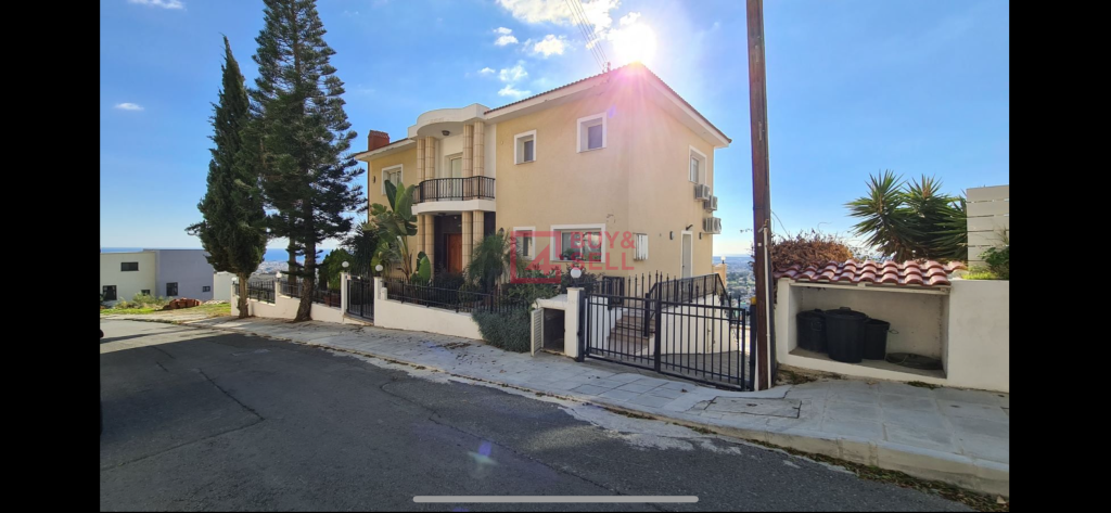 This stunning multi-storey villa in Agia Phyla offers breathtaking views over Limassol and the sea, extending to the Akrotiri Peninsula. Situated on an elevated plot, the 350m² home includes a grand foyer, formal and informal living-dining areas, a fully fitted kitchen, and modern amenities like A/C, C/H, and a security system. The first floor features 4 bedrooms, including a master suite with a walk-in wardrobe, jacuzzi bath, and built-in safe. At pool level, there are 3 additional rooms with a kitchen and bathroom, perfect for guests or staff. Outside, you'll find a lush garden, a private pool, an outdoor bar, and a garage with an electric door. The villa is within easy reach of The Heritage School.