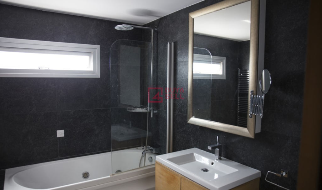 A beautiful staircase takes you to the upper level that hosts a master bedroom with a walk-in closet and en-suite bathroom and an area that can be used a s a roof garden. Another two bedrooms share a main bathroom and there is also a laundry room.