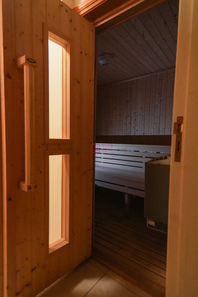 For those seeking relaxation and wellness, the ground floor features a luxurious sauna, offering a tranquil retreat from the stresses of daily life. Step outside to discover a private oasis, complete with a sparkling swimming pool and a designated BBQ area, perfect for hosting gatherings and creating lasting memories with loved ones.