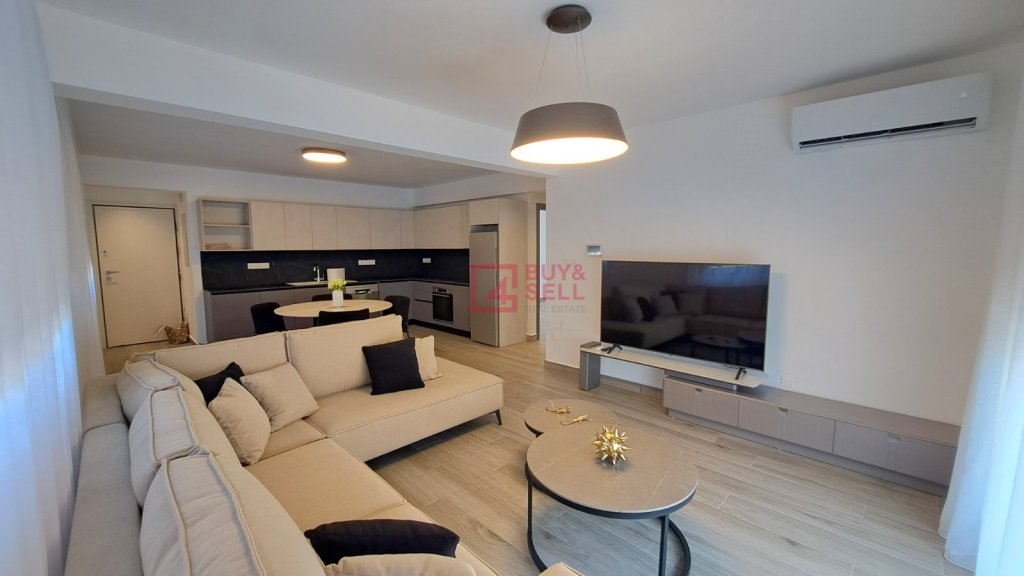 Brand new, bright and specious 2 bedroom apartment in just delivered residential complex, located in the heart of Agios Tychonas Village. The property of 85 sq.m. covered area offered fully furnished, equipped by high quality electrical appliances, has one bathroom, one shower and 2 W/C's, covered parking and storage room. The building is equipped by solar panels, which over the course of a year reward residents with the reduced energy bills and a carbon-free home. Available immediately!