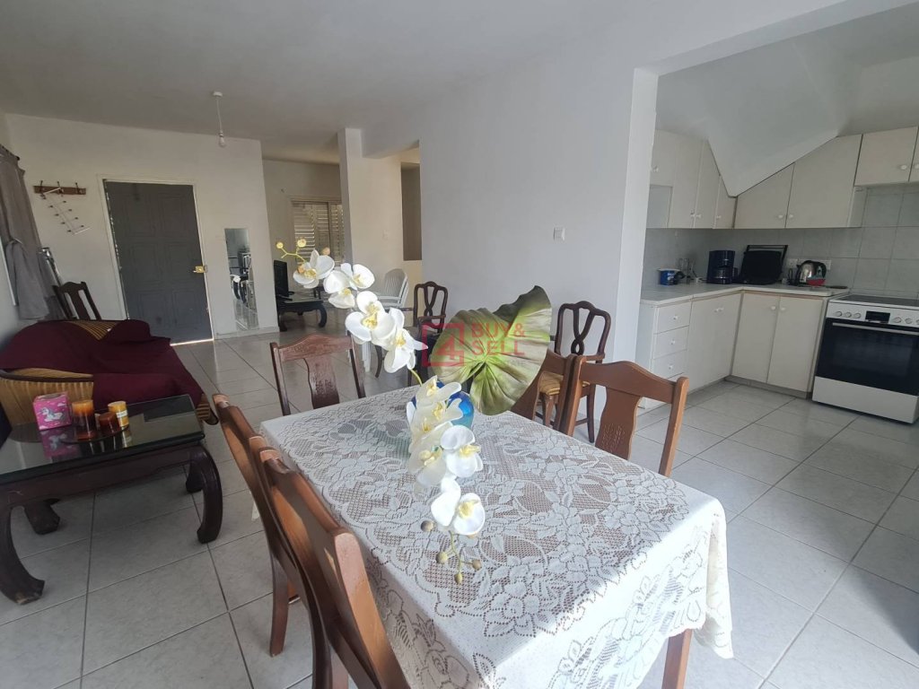 A cozy villa for rent in the area of Dhekelia, Larnaca. The property includes 3 bedrooms, 2 bathrooms and a guest toilet. The open-plan kitchen is combined with the living room, creating a spacious and bright space. The house is equipped with solar panels for heating water, which ensures environmental friendliness and economy. There is a terrace and a communal pool in the complex, where you can enjoy the fresh air and beautiful views. There is a parking lot and a storage room on site. The sea is within walking distance. The highway is easily accessible, which ensures ease of movement.