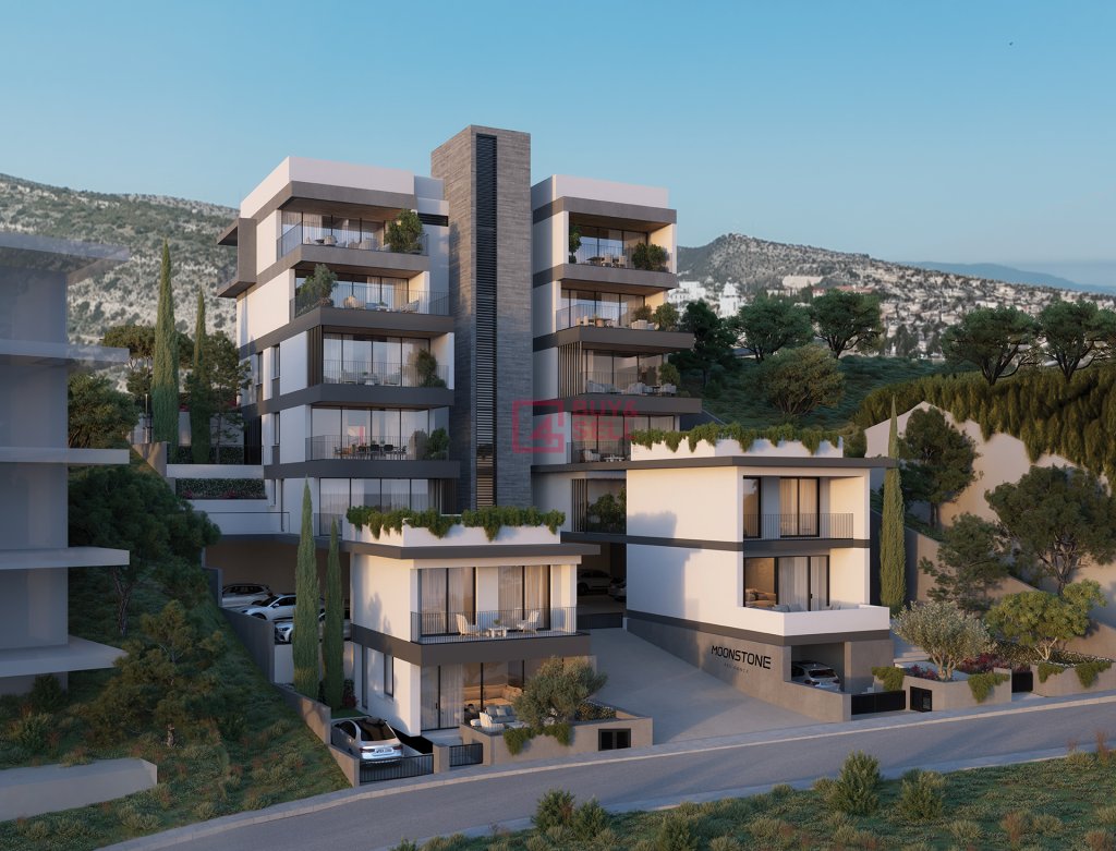 Moonstone Residence by 4TUMYU is a premier hillside development located in Germasogeia, Limassol, offering breathtaking views of the city, sea, and surrounding green hills. This luxurious residential retreat combines the peace of hillside living with the convenience of city amenities, including bars, supermarkets, restaurants, gyms, and schools, all within easy reach. Residents enjoy a tranquil setting and a quick escape from the urban rush, while remaining close to Limassol's lively center. The unique blend of natural beauty and urban vibrancy is reflected in the residence's elegant design, featuring a striking contrast of white stone embellishments and deep grey wall cladding. Moonstone Residence ensures a lifestyle where luxury and convenience coexist in harmony.