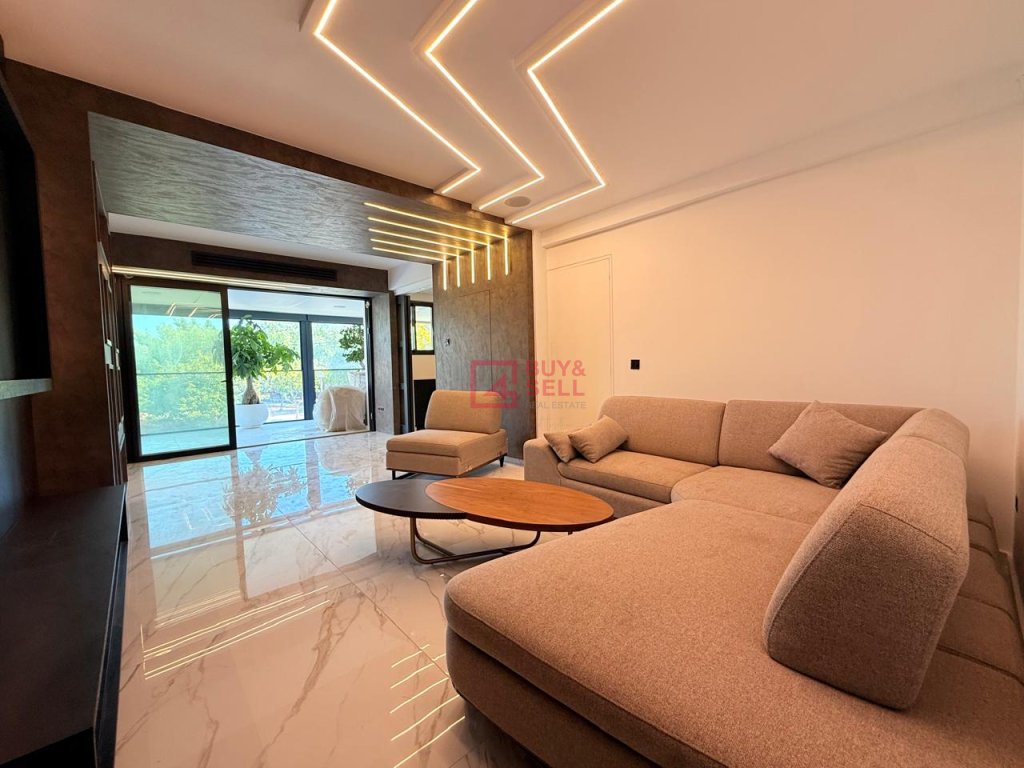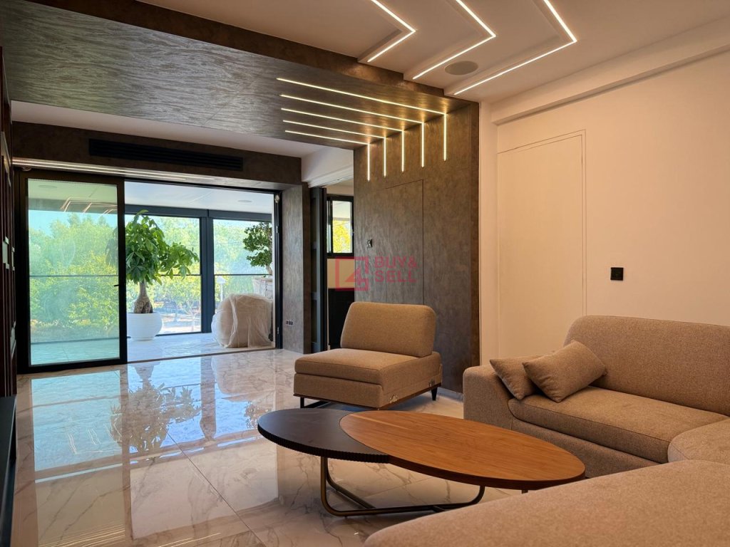This stunning residence combines elegance, comfort, and cutting-edge design. The spacious living area features modern décor, ambient LED lighting, and stylish hidden light fixtures, creating a warm and contemporary atmosphere. A guest toilet is also available for convenience.