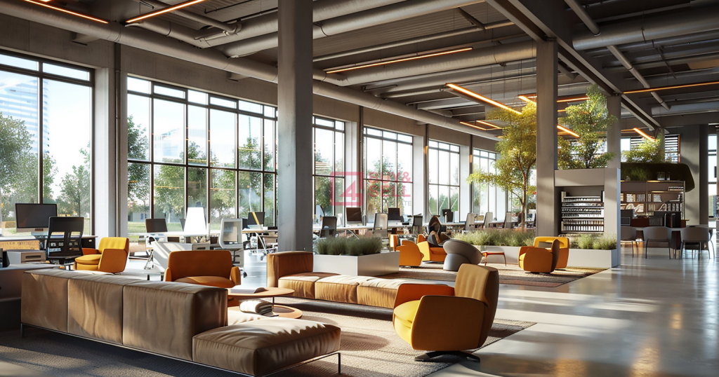 Executive business lounge, perfect for professional meetings or remote work.