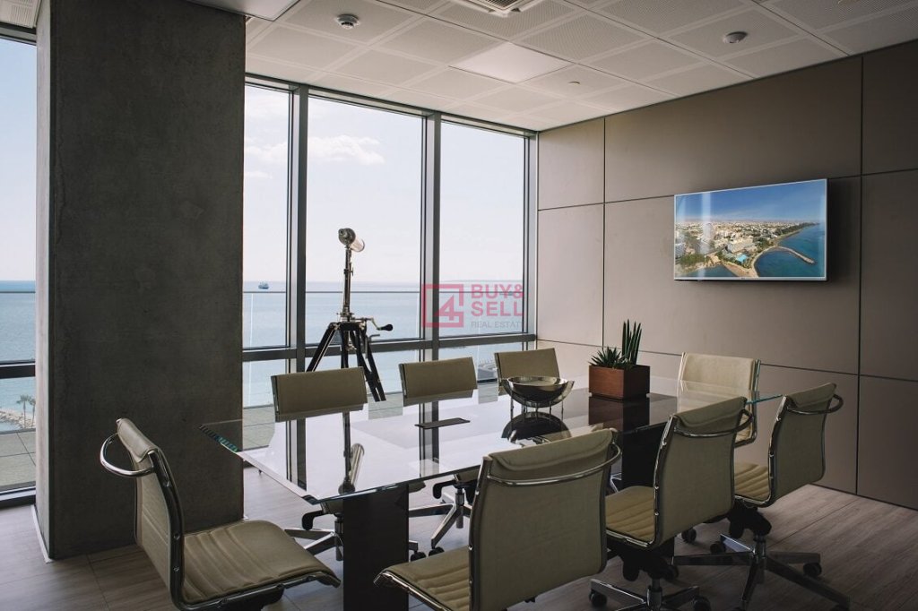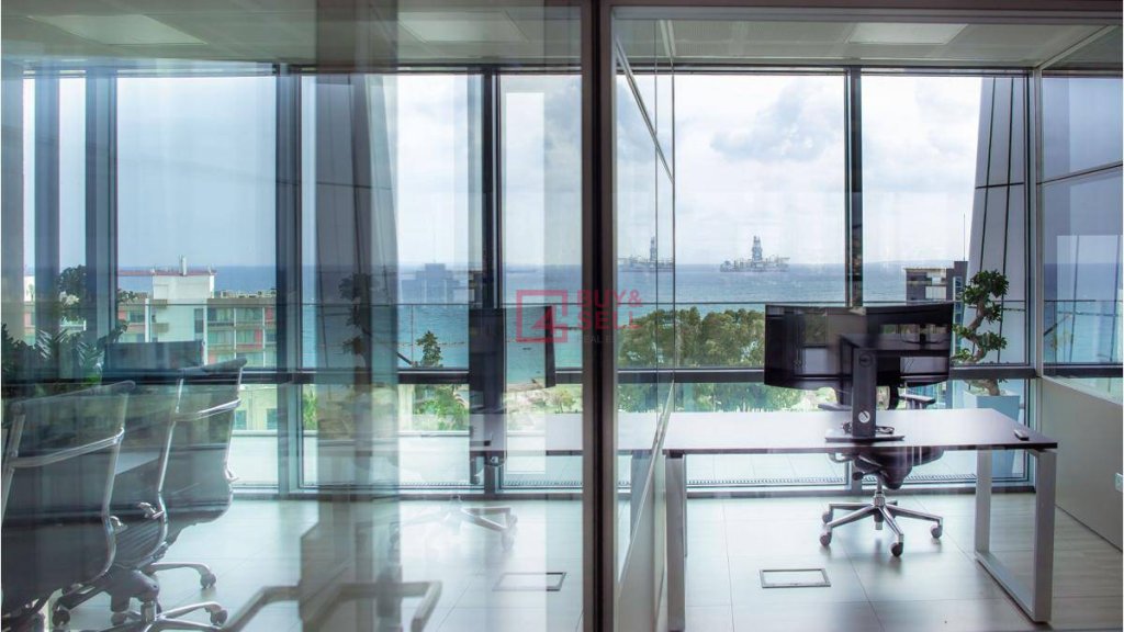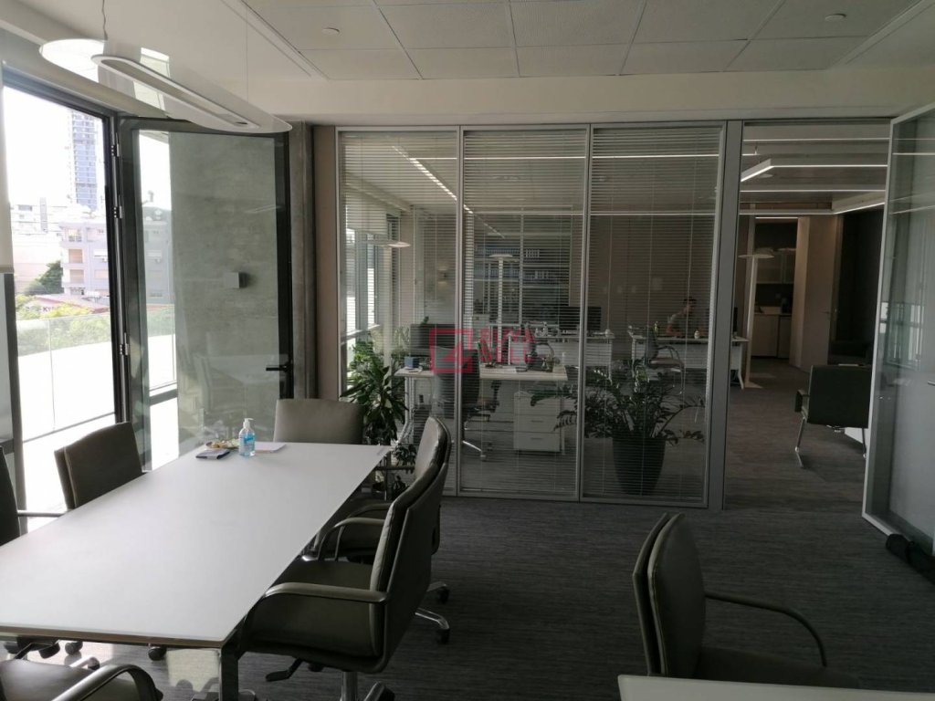 An office located on the second floor of one of Limassol's most popular office buildings. This office space boasts an internal area of 80 sqm and 30 sqm of covered verandas. It features a lobby area, office spaces, a conference room, kitchenettes, and 1 covered veranda. Additionally, it comes with 2 covered parking spaces and a storage room.