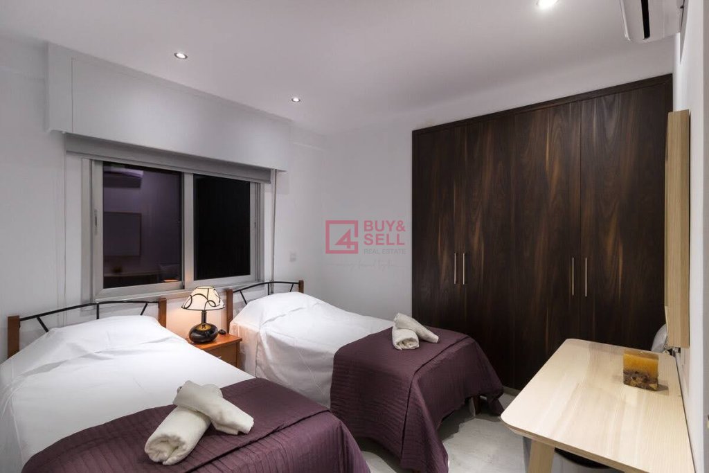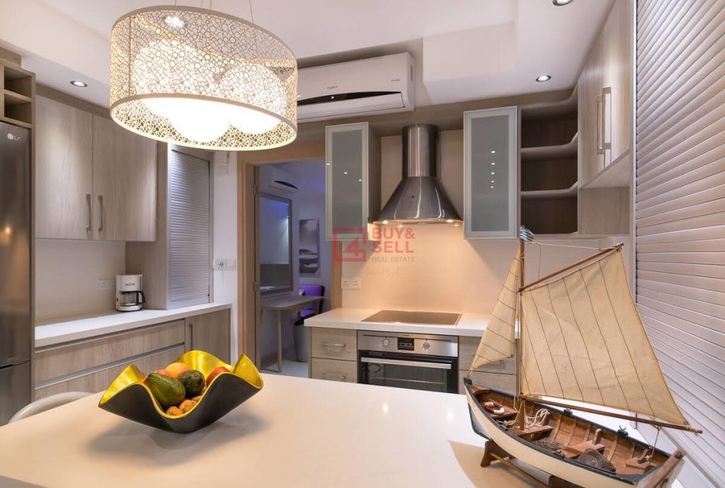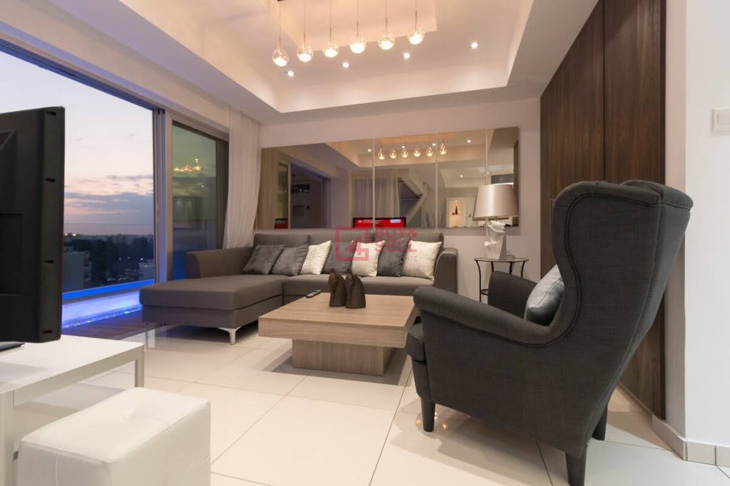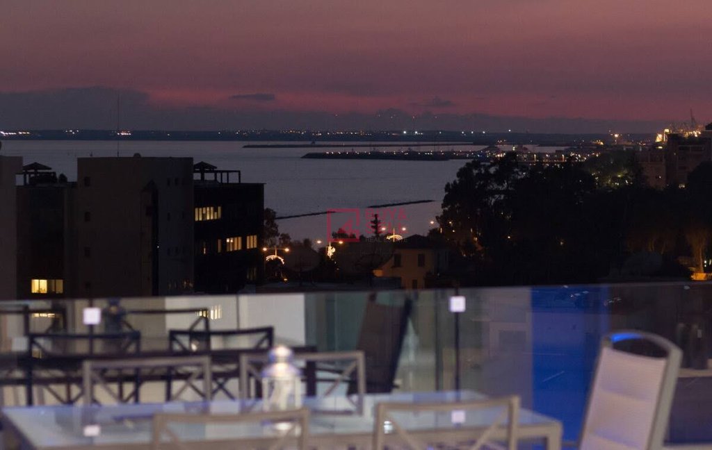 This luxurious 2 bedroom apartment with sea view is located close the beach Enaerios Area with various amenities around. Because of the apartment's prime location and it's high 8th level floor it provides scenery views of the Mediterranean Sea and of the city.