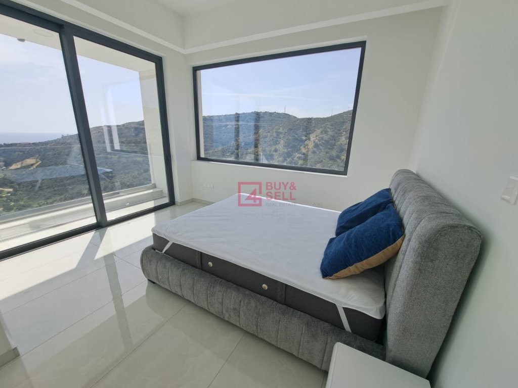 Middle level - open plan dining-living room with breathtaking sea and mountain views. Italian kitchen with central island table. Guest toilet. Huge veranda. Designer hanging fireplace.